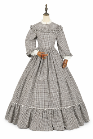فستان أبيض بتصميم كلاسيكي مع أزرار لؤلؤية